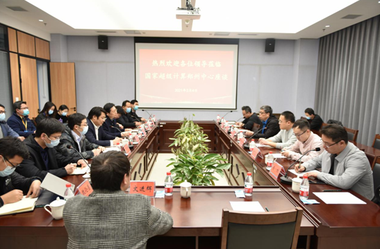2021年3月4日下午,郑州市大数据管理局副局长盛铎、资源管理处处长樊帆、应用推进处副处长李宁,数字郑州科技有限公司CTO杨强,阿里巴巴达摩院算法专家付志航,阿里云数字政府解决方案架构师肖栋等领导专家到国家超级计算郑州中心座谈交流。郑州中心执行主任商建东、副主任郭恒亮、副教授韩林及中心青年骨干教师参加座谈会。