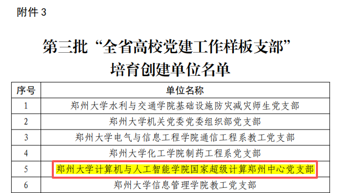近日,中共河南省委教育工委公布了第三批全省高校党建“三级联创”评选结果,郑州大学计算机与人工智能党委国家超级计算郑州中心党支部成功入选“全省高校党建工作样板支部”培育创建单位。此次入选,是对郑州中心党支部党建工作成效的充分肯定,也标志着郑州中心党建工作迈上了新台阶。